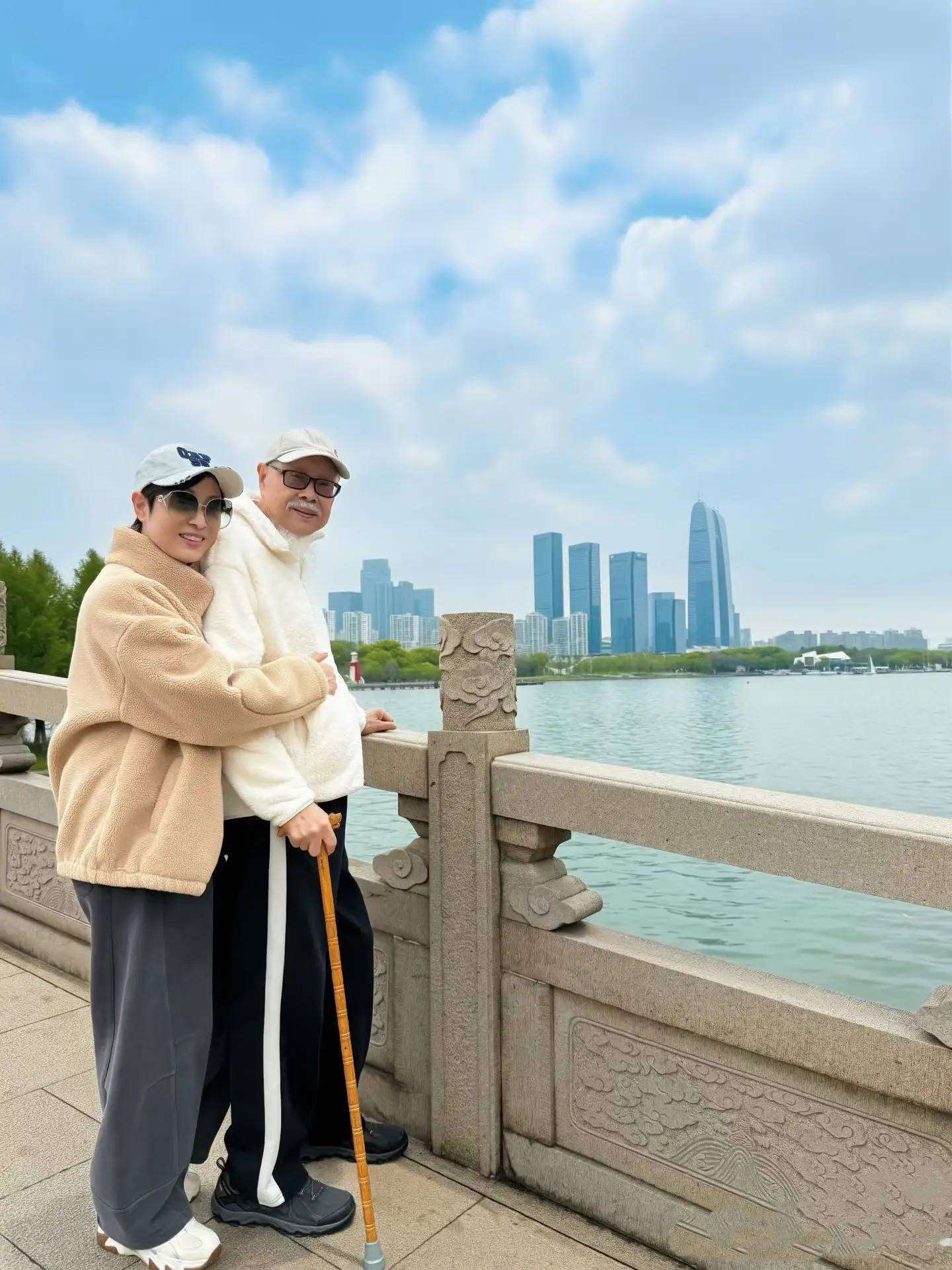 58岁的陈法蓉最近带着89岁的老爸在苏州玩了一圈,社交平台上晒出的照片把网友们暖到不行。父女俩穿着同款卡其色摇粒绒外套,戴着一样的棒球帽,站在金鸡湖边的“天使之翼”雕塑前,鹅蛋脸、流畅的下颌线简直像一个模子刻出来的。陈爸爸虽然拄着拐杖,但腰板挺得笔直,笑起来眼睛眯成月牙,精神头比不少年轻人还足。